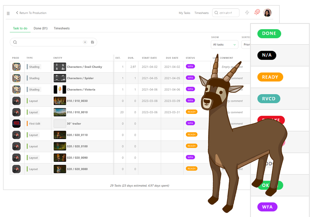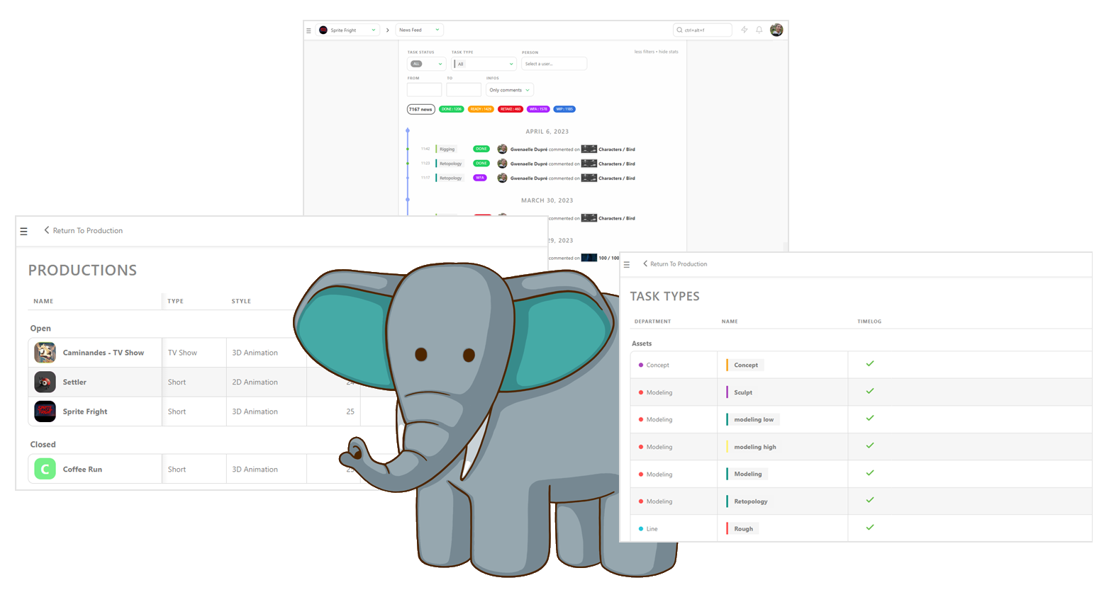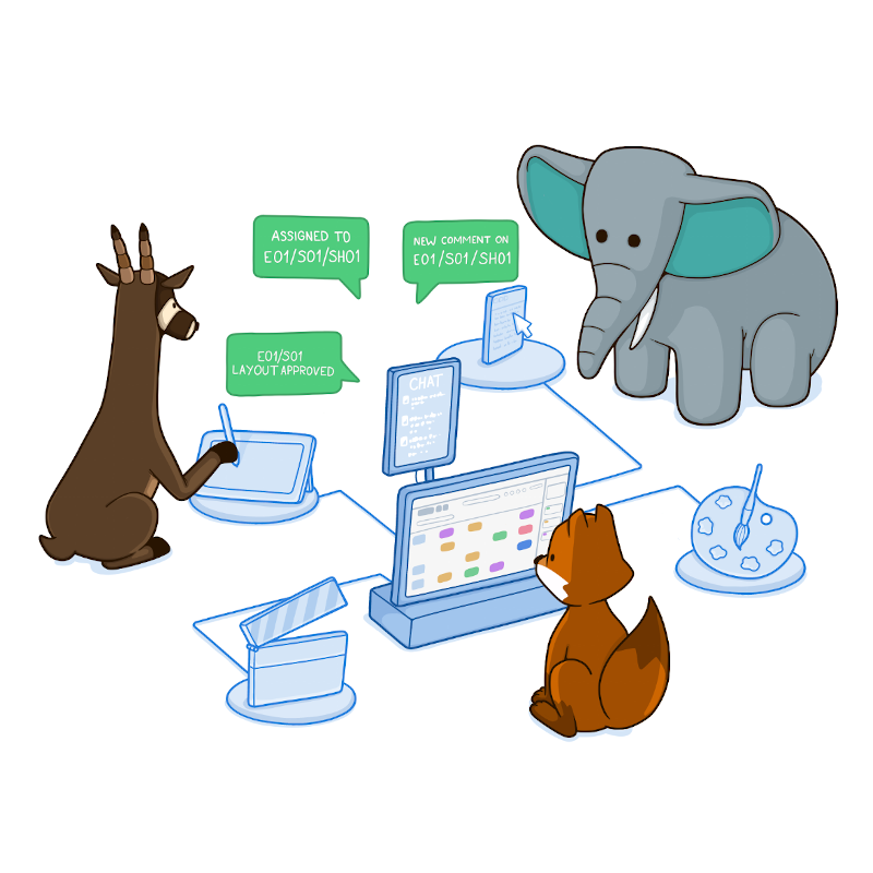 Building a movie involves a lot of data: assets, shots, casting, task assignments, file locations, and more. All this information must be shared among all departments. The Kitsu API provides central storage for all this data, which can be queried from anywhere.